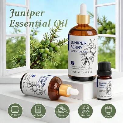 HIQILI 杜松子精油,浓郁木质香调,纯杜松精油,适用于放松、清洁、按摩、SPA、皮肤及足部护理,可添加到香薰机、净化乳液中 - 100毫升/30毫升/10毫升杜松油 - Juniper Berry - 查看 9