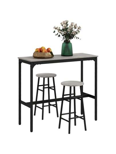 HOMCOM 3 Piece Bar Table Set With 2 Stools, Industrial Bar Table And Stool Set, Dining Table And Chair Set For Small Space, Grey - 灰色 - 查看 1
