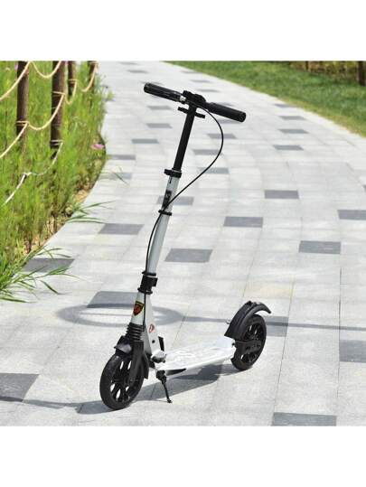 HOMCOM Adult Teens Kick Scooter Foldable Height Adjustable Aluminum Ride On Toy For 14+ With Rear Wheel & Hand Brake, Shock Mitigation System - 銀色 - 查看 1
