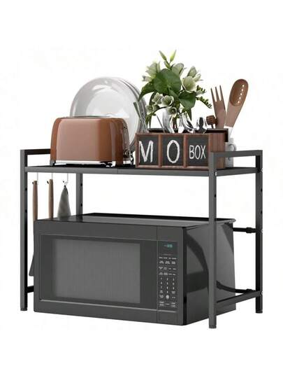 HOMCOM Erweiterbares Mikrowellenregal Mikrowellenständer Mit 3 Haken Küchenregal Mikrowellenhalter Aus Metall, Schwarz - 黑色 - 查看 1