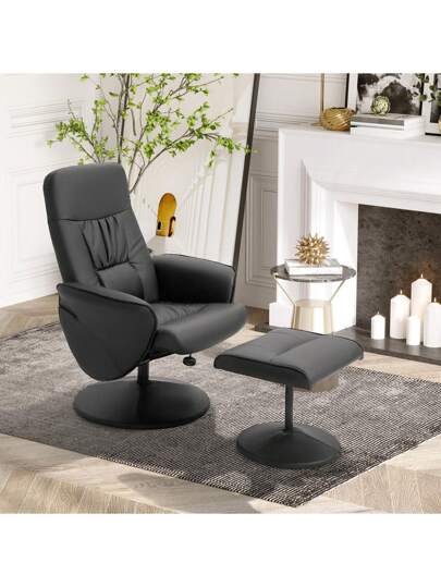 HOMCOM Executive Recliner Chair High Back And Footstool Armchair Lounge Seat - 黑色 - 查看 4