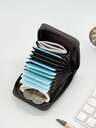 HOVI'S 男士拉链钱包,PU 皮革材质,带多个卡槽和身份证窗口,小巧设计,尺寸仅为 11.5x9.5 厘米,可收纳硬币和手机,棕色,办公必备。