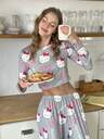 Sanrio 两件套女士印花宽松开衫,带纽扣和松紧腰裤,可爱睡衣套装
