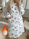 Sanrio 2件套女士Hello Kitty加厚抓绒宽松长袖上衣和舒适长裤家居服套装,蓬松冬季服装