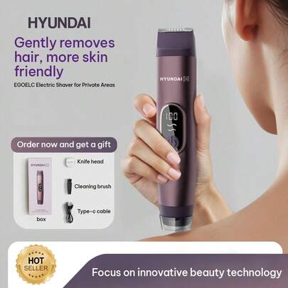 HYUNDAI 现代二合一女士电动剃毛器(紫色),陶瓷刀头,LED显示屏,USB-C充电,双刀头设计,适用于比基尼线、腋下、腿部和私处脱毛 - 紫羅蘭色 - 查看 1