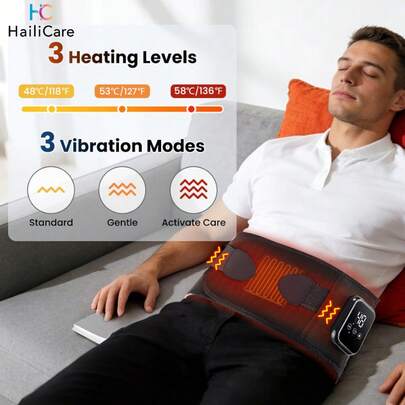 Hailicare 无线加热腰带,带下背部腰部支撑,液晶触摸屏无线加热垫,适用于腹部和腰部,USB充电,3档加热振动按摩腰部支撑带,用于放松和缓解不适。 - 黑色 - 查看 12