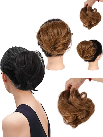 髮髻馬尾辮延長辮,直筒合成纖維假髮片充分短馬尾小圓麵包髮飾彈性簡單的大腸髮圈適合女士 - 銅色 - 查看 4