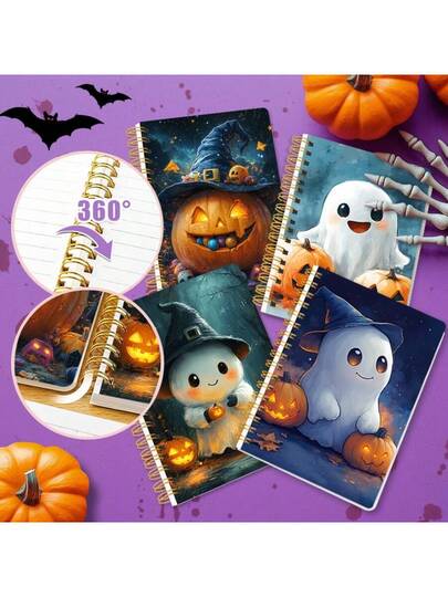 万圣节螺旋笔记本 - 可爱的南瓜鬼魂设计,节日主题日记本,适合学校、办公室、派对礼品 - 秋季季节性文具,不给糖就捣蛋书写记事本,万圣节礼物创意 - 彩色 - 查看 4