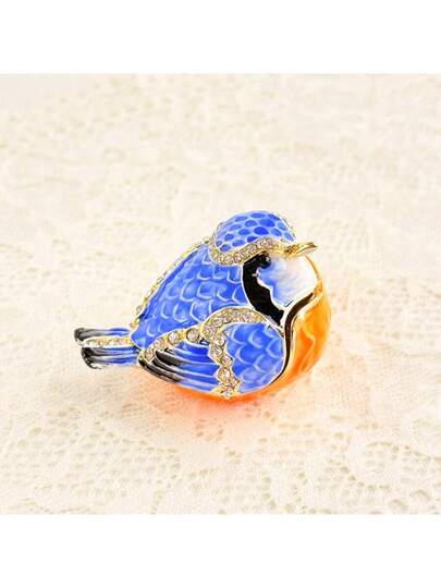 手绘鸟形珠宝盒 - 珐琅金属链珠宝收纳盒,复古珠宝设计,收藏品小雕像,家居装饰,适合圣诞节、情人节、母亲节、毕业礼物,鸟形装饰 - 藍鳥首飾盒 - 查看 1