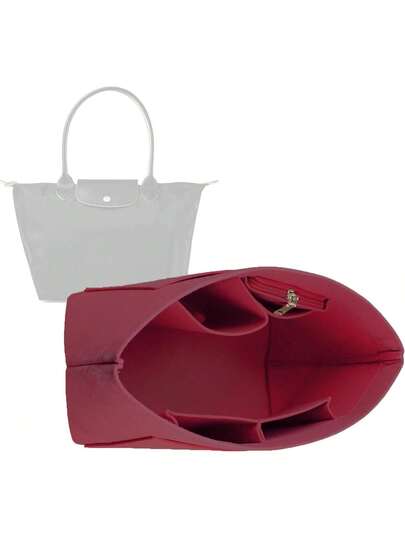 手提包收纳内胆,多口袋毛毡托特包收纳内胆,拉链收纳袋内胆,秋季酒红色