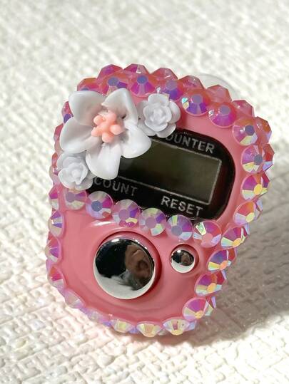 手工DIY水钻念珠计数器手表,轻巧便携,可爱多彩花卉装饰电子显示屏,可计数念珠,生日/斋月/情人节小礼物,适合斋月期间宗教诵经计数、日常宗教活动、斋月礼物,方便携带