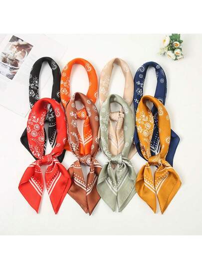 女士波西米亞風格的洋基印花頭巾,時尚優雅的光滑色緞子圍巾,用於防曬或作為母親節禮物。頭巾,髮箍,頭帶,為您打扮造型的理想選擇 - A - 查看 21
