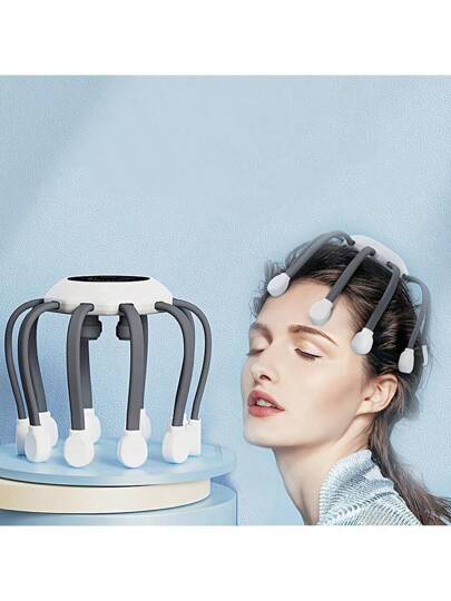 頭部按摩爪電動頭部按摩器頭皮按摩器頭部按摩保健章魚頭部按摩頭部按摩頭部按摩充電 - 白色 - 查看 4