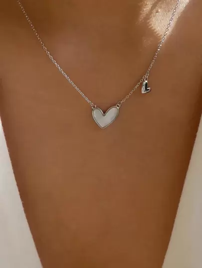 心形吊坠项链 情人节、妈妈、母亲、母亲节、礼物 - 銀色 - 查看 4