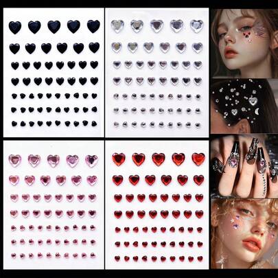 心形水钻贴纸 亚克力心形宝石贴纸 水晶宝石 自粘平底宝石水钻,非常适合面部装饰和DIY工艺品,送给她的礼物/浪漫礼物/爱情礼物/情侣礼物/情人节礼物 - 彩色 - 查看 10