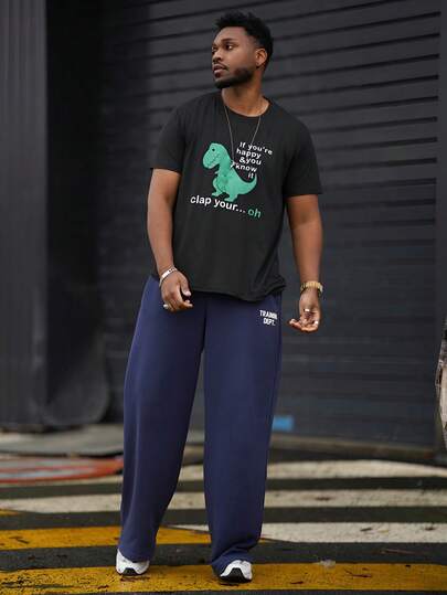 Heavens Edit 男式恐龙口号印花圆领休闲通勤 T 恤 - 黑色 - 查看 1