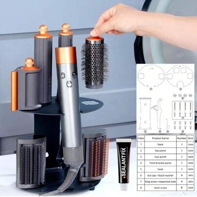 重型金属收纳架,适用于卷发棒和吹风机 - 带造型工具隔层,可壁挂或桌面放置,适用于各种造型工具(黑色/单面) - 节省空间,浴室必备,礼品,庆典 - 彩色 - 查看 10
