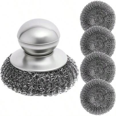 重型不锈钢刷柄,专业厨房清洁工具,适用于锅碗瓢盆,专为去除顽固污渍和烧焦食物而设计,舒适易握的手柄,防滑控制,不锈钢刷毛防锈防变形。 - A - 查看 6