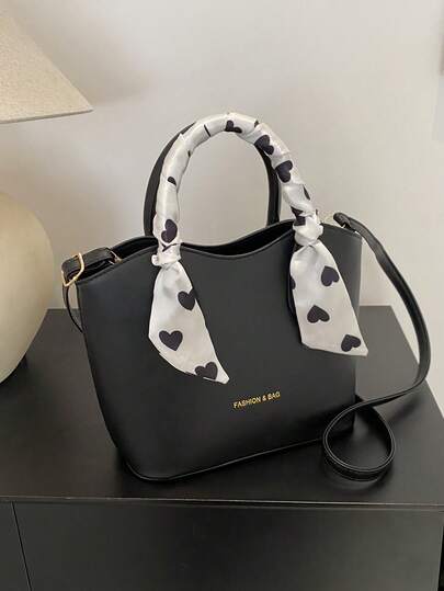 高端独特红色包包,2024年新款流行女士包包,百搭斜挎包,配时尚围巾,单肩包 - 黑色 - 查看 2