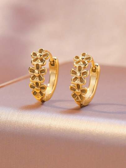 高品质不锈钢女士圈形耳环,低过敏性316L耳钩,花朵蝴蝶结镶嵌,闪亮18K真空电镀,防褪色,优雅吊坠时尚设计,适合女士日常佩戴、节日、假期、夏季、派对和其他场合。
