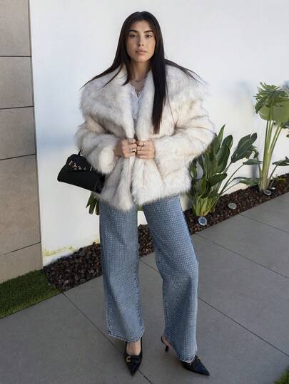 Hitanina 女士冬季翻领前开襟蓬松夹克 - 灰色 - 查看 6