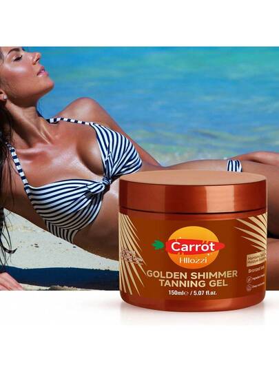 Hllozzi 150毫升胡萝卜金珠光自助美黑凝胶 | 美黑加速剂 | 不油腻,防水,富含胡萝卜和维生素E,滋养保湿 | 打造自然健康的古铜色光泽 - 紅木色 - 查看 7
