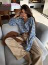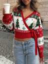 HoloChill 女款拼色V领长袖休闲开衫,2025秋冬新品,圣诞节