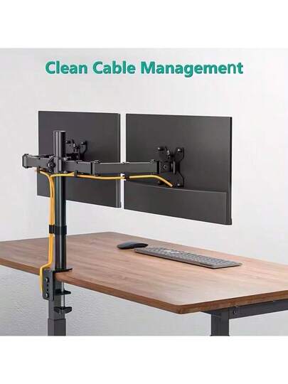 家用双臂电视/电脑显示器支架,符合人体工程学设计,适用于两台 13 英寸至 27 英寸液晶显示器,可双向倾斜和旋转,高度可调。 - 黑色 - 查看 1
