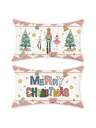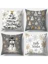 4 件套圣诞主题枕套,粉色字母印花雪人和驯鹿图案,农舍风格涤纶面料拉链单面印花靠垫套,不含枕芯,冬季、圣诞节假期家居装饰,适用于沙发、床、椅子、卧室、客厅、露台装饰