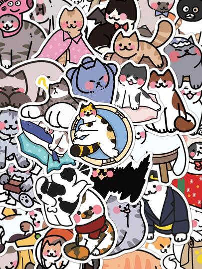 50 件猫贴纸手册笔记本电脑手机壳行李滑板头盔装饰贴纸,适用于学校用品,返校 - 彩色 - 查看 8