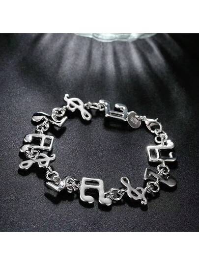 热销精美音符链 925 纯银镀层手链 女士婚礼派对女生学生圣诞礼物时尚首饰 - 銀色 - 查看 1