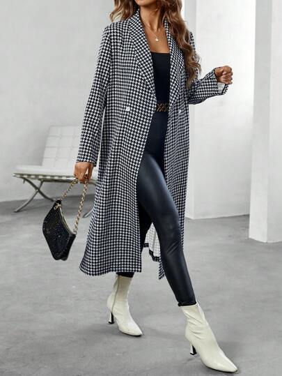 SHEIN Clasi 千鳥格印花雙排釦外套 - 黑與白 - 查看 1