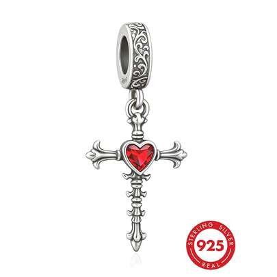 HuooNew 925纯银复古吊坠,串珠流苏装饰,十字架设计,日常佩戴,生日礼物,镶嵌立方氧化锆