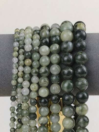 I Strand 天然绿色草石珠 4/6/8/10mm,时尚纹理,适用于 DIY 手链项链首饰,适合情侣手链、手机链、钥匙链、配件。