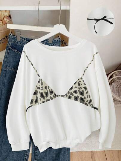 INAWLY 女士休闲豹纹胸罩印花卫衣,适合秋季穿着。 - 白色 - 查看 4