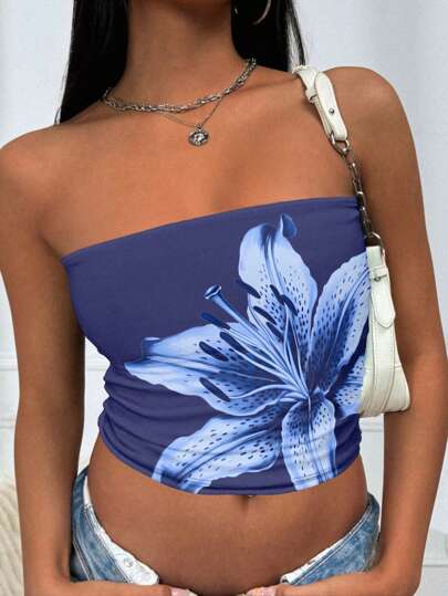 INAWLY Y2K 百合花印花抹胸短款抹胸 - 彩色 - 查看 1