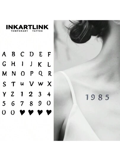 INKARTLINK革命性技術紋身貼紙,半永久性紋身,逼真的紋身,字母、數字和情感紋身,臨時紋身,假紋身,耐水,仿真度極高,特色設計的紋身,鮮艷的紋身 - 黑色 - 查看 1