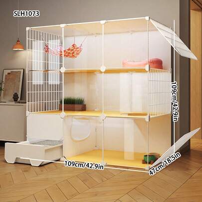 室内猫笼带猫砂盆、猫公寓、猫屋、猫厕所,拥有宽敞的自由空间 - 彩色 - 查看 1