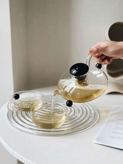 Ins Style 600ml玻璃茶壶带泡器耐高温耐寒适合下午茶和花茶外观清晰的茶具适合户外、露营、母亲节礼物 - 透明 - 查看 1