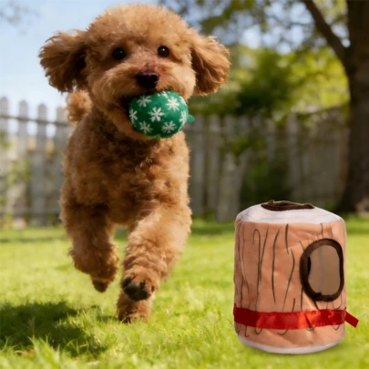 互动式毛绒狗狗玩偶,带零食投放器,适合中大型犬,耐用毛绒玩偶,可刺激狗狗智力,可咀嚼,可爱木质香味,缓解无聊训练玩偶