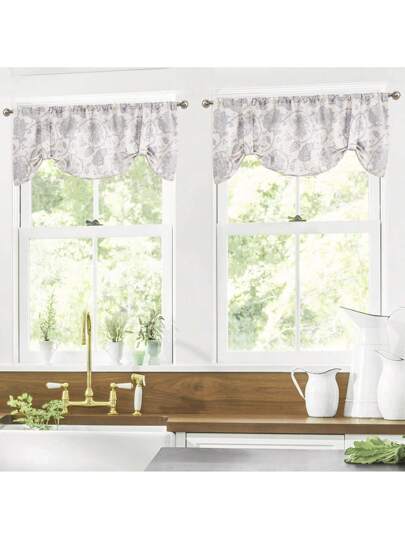1 Pcs Polyester Linen Floral Printing Curtains Gray S-Shaped Curtain Decoration, Country Style Short Curtain/Partition Curtain, Suitable For Window, Cabinet And Door Decoration - 淺灰色 - 查看 1
