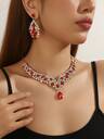 5 件闪亮水钻首饰套装,包括耳环、戒指、手链、项链,甜美别致的设计,非常适合新娘婚纱配饰