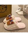 新款女士毛绒拖鞋,户外穿着,厚衬里,蝴蝶结封闭式鞋头,舒适防滑,冬季保暖