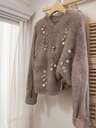 JIANHU 粉色 V 领针织开衫 - 春夏蓬松装饰开衫,配人造珍珠纽扣和流苏细节,中式早午餐和茶会
