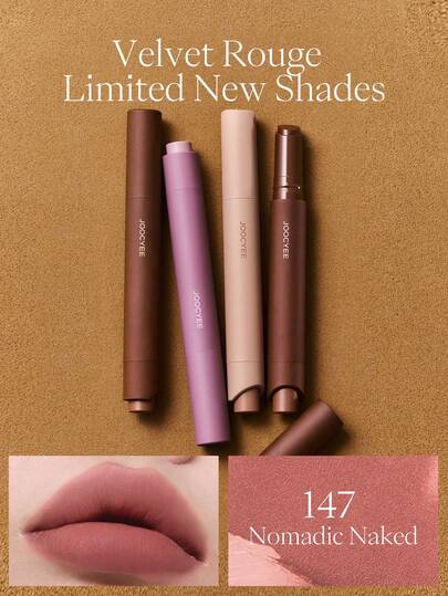 JOOCYEE Velvet Rouge Limited 全新色号 147 Nomadic Naked 哑光唇膏及唇线笔,易于涂抹,时尚优雅的秋冬棕色调 - 147 Nomadic Naked - 查看 3