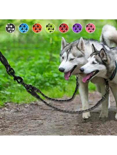 Joytale反光雙頭牽繩,可適用於2隻狗,防糾結行走牽引繩帶有舒適的手把 - 彩色 - 查看 1