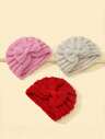 1 件儿童/青少年双层保暖护耳蝴蝶结和绒球针织帽