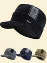 JZML 1 件装男士彩色块字母装饰保暖内衬护耳针织帽冬季配饰