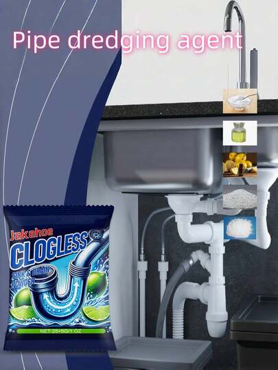 jakehoe 杰克豪;无堵塞水槽及排水管清洁粉;排水管清洁剂;管道疏通粉;下水道清洁粉;适用于洗脸盆/水槽/马桶下水道 - 粉狀 - 查看 8