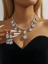 3件套女士首饰套装 - 时尚耳环和项链,几何水晶新娘爪链,派对和生日礼物